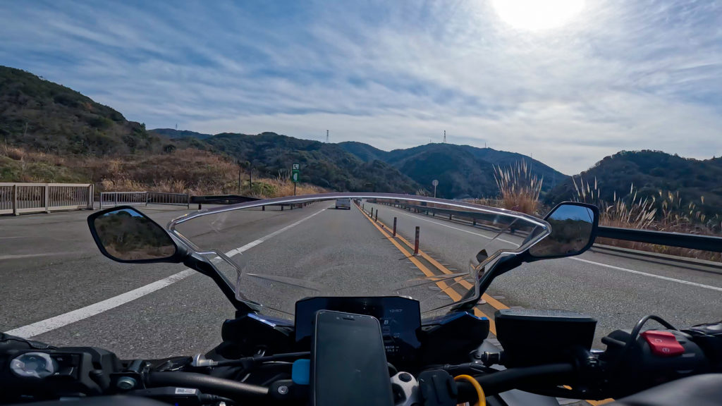 車もあまり通らず程良くくねった道で楽しめるためバイクで颯爽と駆け抜けることができ、時折この快適な道を求めにきたライダーとすれ違う良道となっている。