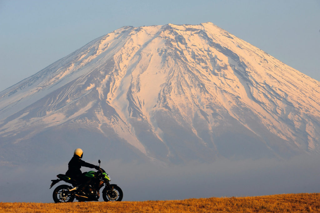 というわけで、いきなりですが、実走レポートと秘蔵?写真を織り交ぜてツーリングエリアを紹介する新企画『ニッポン、旅バイク』スタートです。第1弾は、日本が世界に誇る名峰・富士山でありまして、担当はせんえつながら私、カメラマンの武田が務めさせていただきます。じつのところタンスタとは創刊当時から付き合いがあり、振り返れば『 ㏄チャレンジ』『日本大陸ツーリング』などなど数々の伝説的企画に携わり、気が付けば 路に達し…。まあ、そんなことはどうでもいいっすね。で、もう一人、忘れちゃいけない旅の大大先輩、賀曽利 隆さんも登場だ。最近はゴールデンタイムの人気テレビにも登場し、ネットをもざわつかせた御仁。生涯旅人も 歳を超えいよいよメジャーデビューか!と思いきや「ちょっと、アレは本当にもうカンベンしてよ」という感じらしい。そんなこんなで、今回71歳と51歳、合わせて122歳という若者向けタンデムスタイルには申し訳ない年齢域ではありますが、以後宜しくどーぞ。